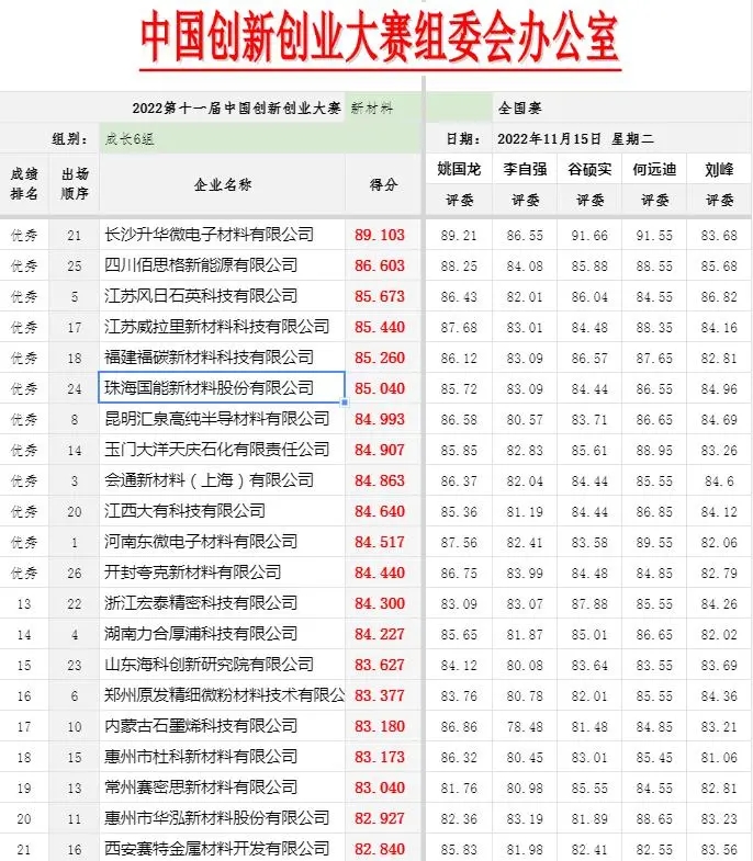 國(guó)能新材作為廣東省唯一入圍國(guó)賽的第二輪廠商,在國(guó)賽中取得了優(yōu)勝獎(jiǎng)的好成績(jī),并有資格晉級(jí)終極決賽,獲獎(jiǎng)企業(yè)有機(jī)會(huì)獲得最高100萬(wàn)元賽事獎(jiǎng)勵(lì)。 我們共創(chuàng)未來,不忘初心,砥礪前行,在發(fā)展中不斷創(chuàng)新,譜寫更輝煌的佳績(jī)!